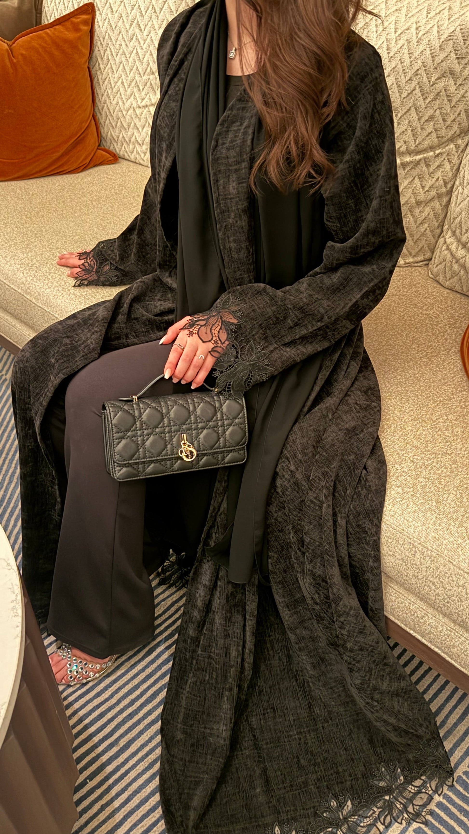 القماش: قماش تركي مكس شمواه وحرير مغسول مع دانتيل مطرز على الاكمام واسفل العباة